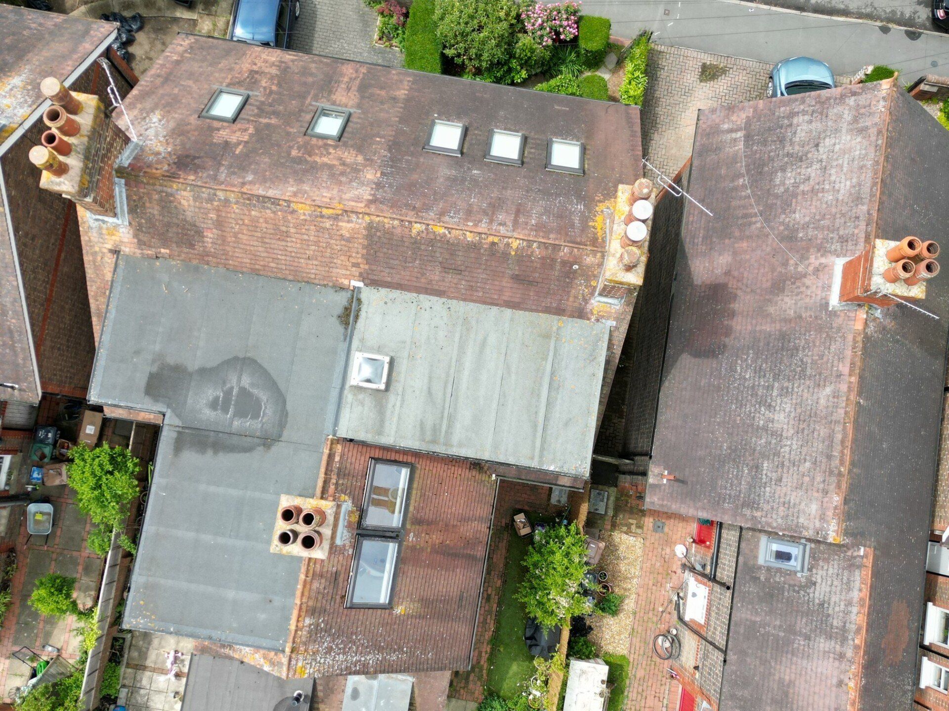 Drone surveys provide access to parts of a building that are usually difficult to inspect, such as; roofs, chimneys, and upper walls, without the need for scaffolding or ladders. They help identify hidden damage, poor workmanship, or deterioration that could be missed from the ground.